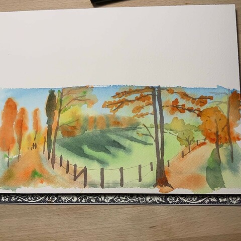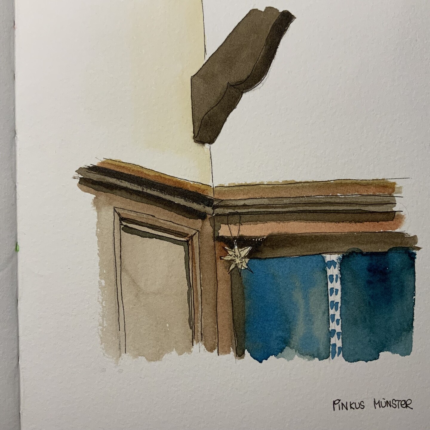 Guten Morgen ☕️ Heute Sitzplatzausblick bei Pinkus in Münster #übenübenüben #doodledoodledoo #aquarell #watercolor #MastoArt