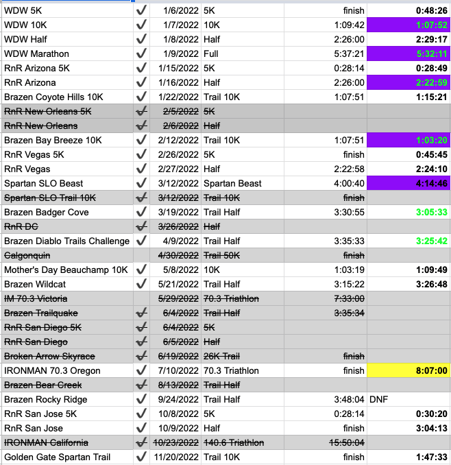 That's a wrap on my 2022 race calendar (nothing scheduled for December, next race is RnR Vegas in February).