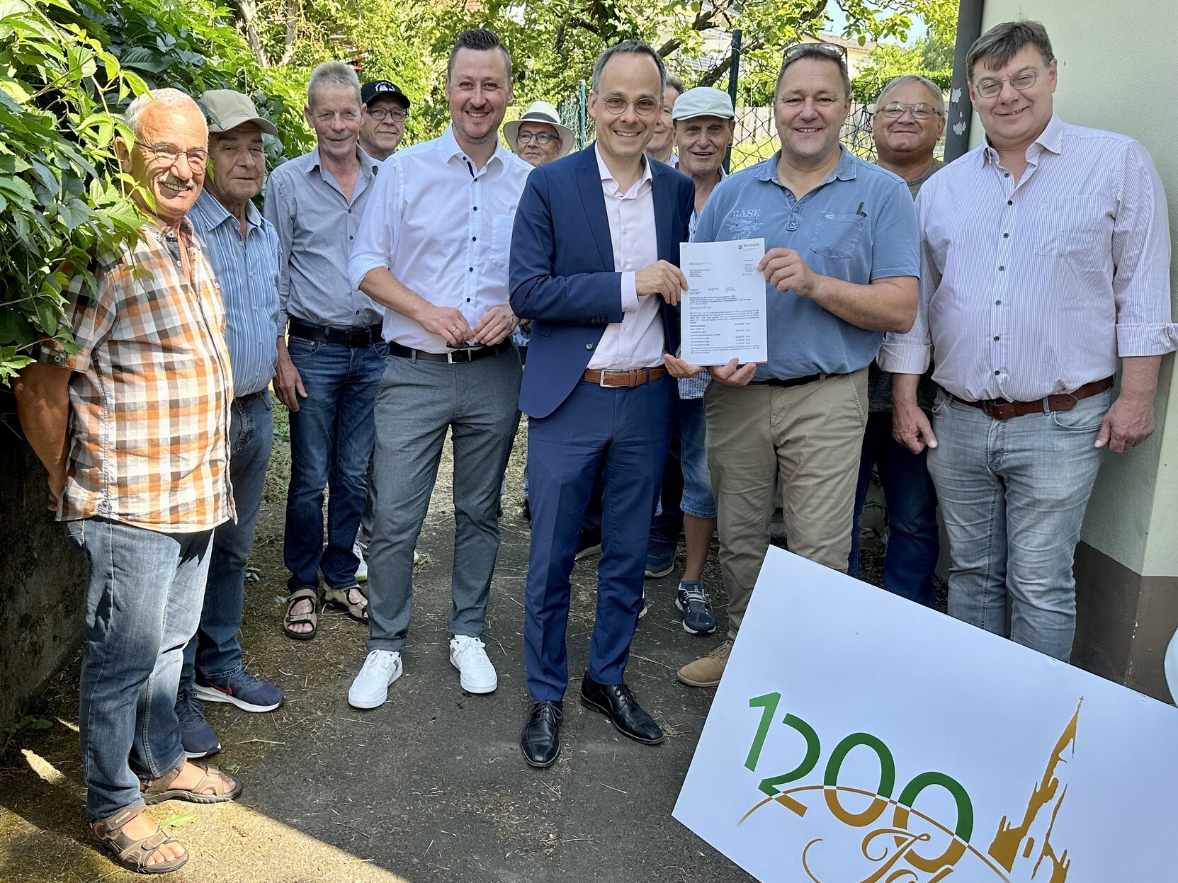 Der Bescheid wurde im Namen der Landesregierung von Staatssekretär Denis Alt an Ortsbürgermeister Helmut Schmidt übergeben.