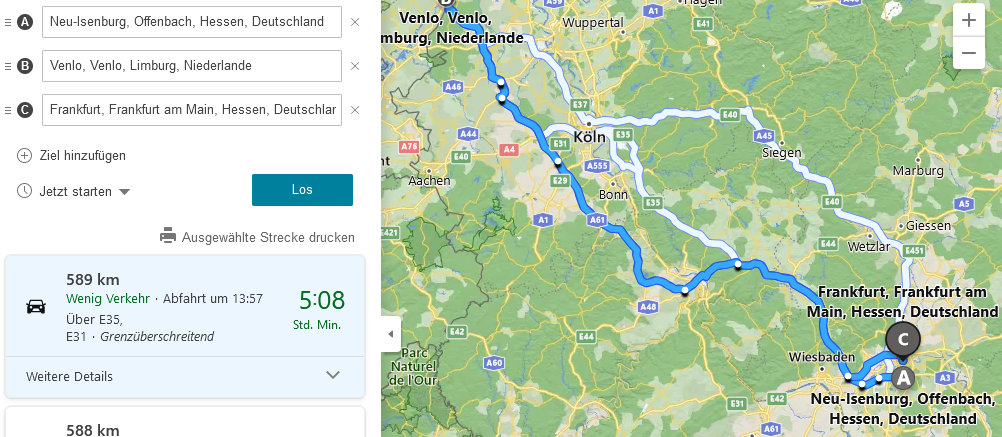 Das war die Route der Büchsen - man achte genau darauf, wo Start (A) und Ziel (C) liegen: