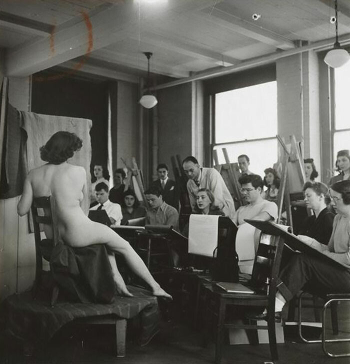 Students Drawing A Nude Model In An Art Class, 1948, Columbia University.