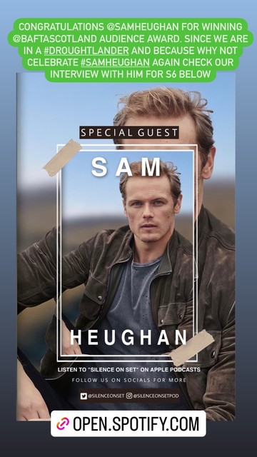 Congratulations @SamHeughan for winning @BAFTAScotland Audience Award. Since we are in a #droughtlander and because why not celebrate #SamHeughan again check our interview with him for S6 here: https://open.spotify.com/episode/7IwDi5pFVvcNVmQyWn46sx?si=8lPGaWoxTNuiA1dIiGecFQ