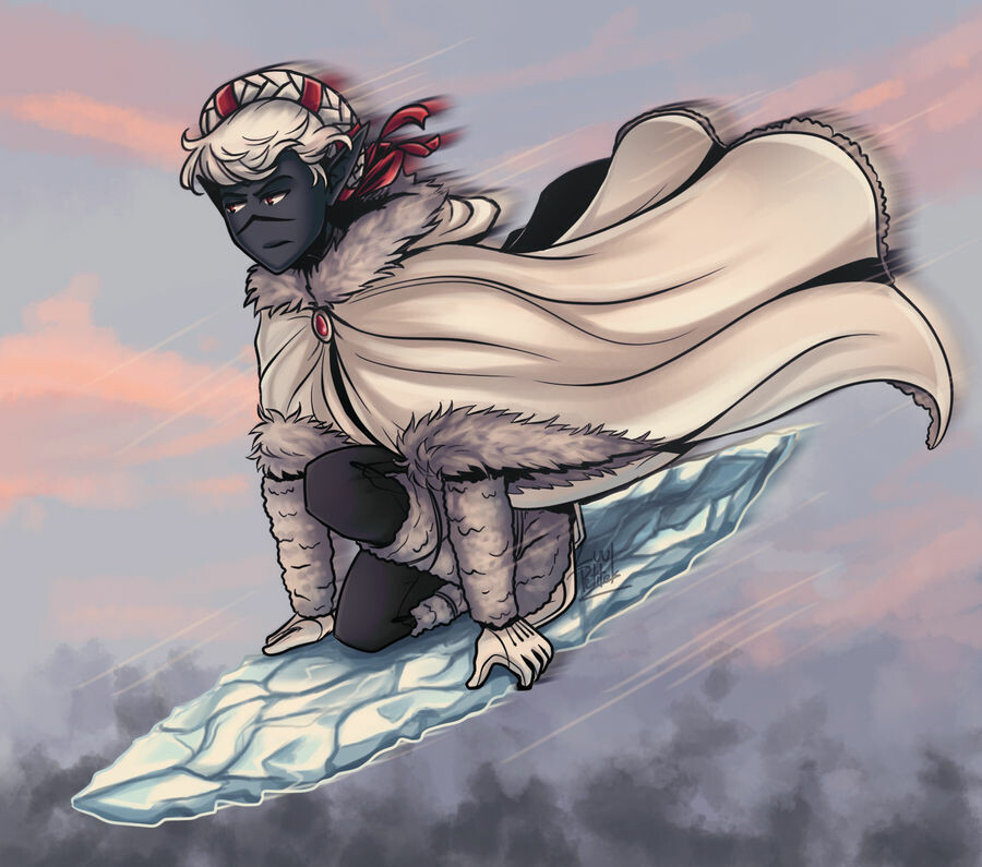 An art challenge done on a stream. The topic was "fantasy mount", so ofc I drew Vas on his brand new fav form of transportation - the ice boardโจ
