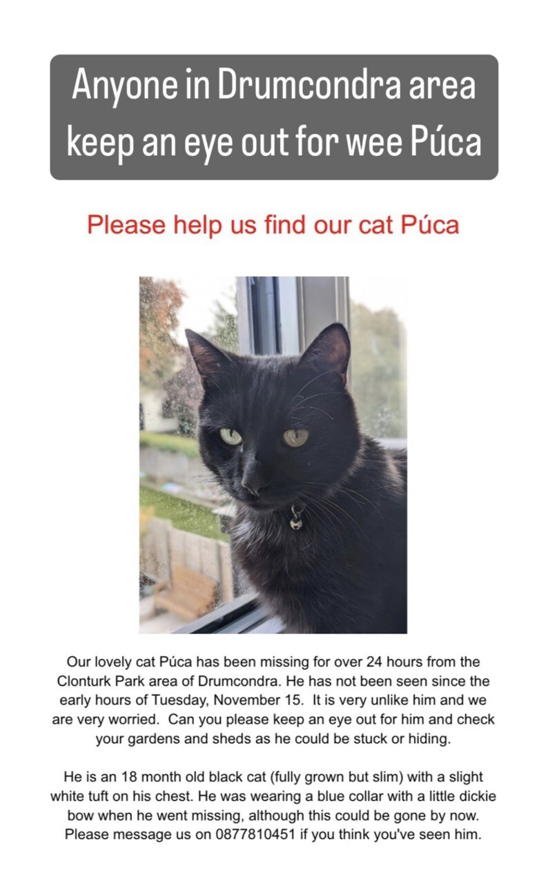 #Drumcondra folk! Please keep an eye out for Púca ❤️ #IrishTwitter #IrishMastodon