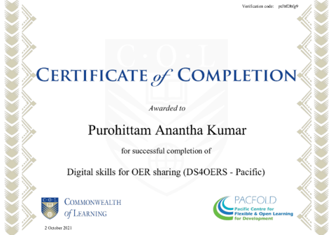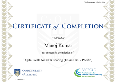 Congratulations to Prem Prasad on earning the #DS4OERS #Certificate of Completion. Celebrate your OER achievement!