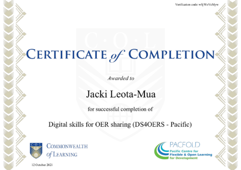 @jacki Jacki - extending congratulations on achieving your #Certificate of Completion for #DS4OERS. You are now an #oerpractitioner!