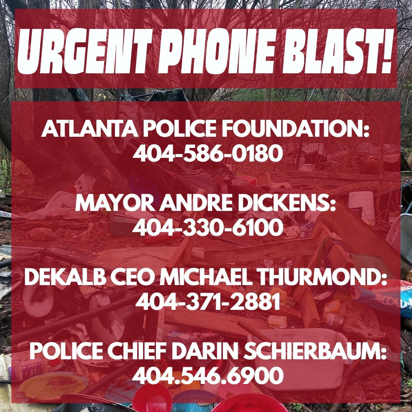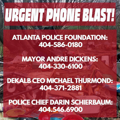 🚨 URGENT PHONE BLAST 🚨 to demand that the City of Atlanta and Dekalb County end their attack on forest defenders. Please take a moment to call.