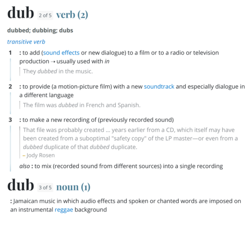 Some definitions to add context, from: https://www.merriam-webster.com/dictionary/dub.