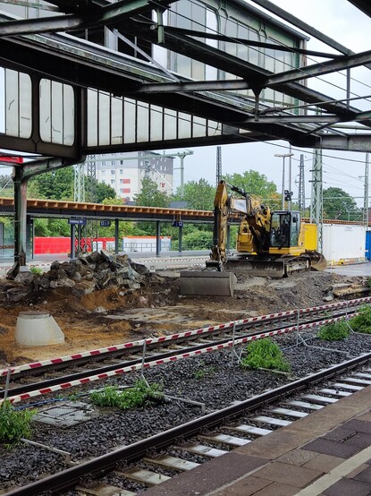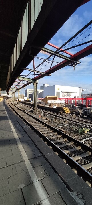 In #DuisburgHbf gehts voran. Bahnsteig Gleis 10/11 wird neu gemacht. Der alte Bahnsteig ist kaum noch zu erkennen. Gleis 12/13 ist das Dach schon neu.