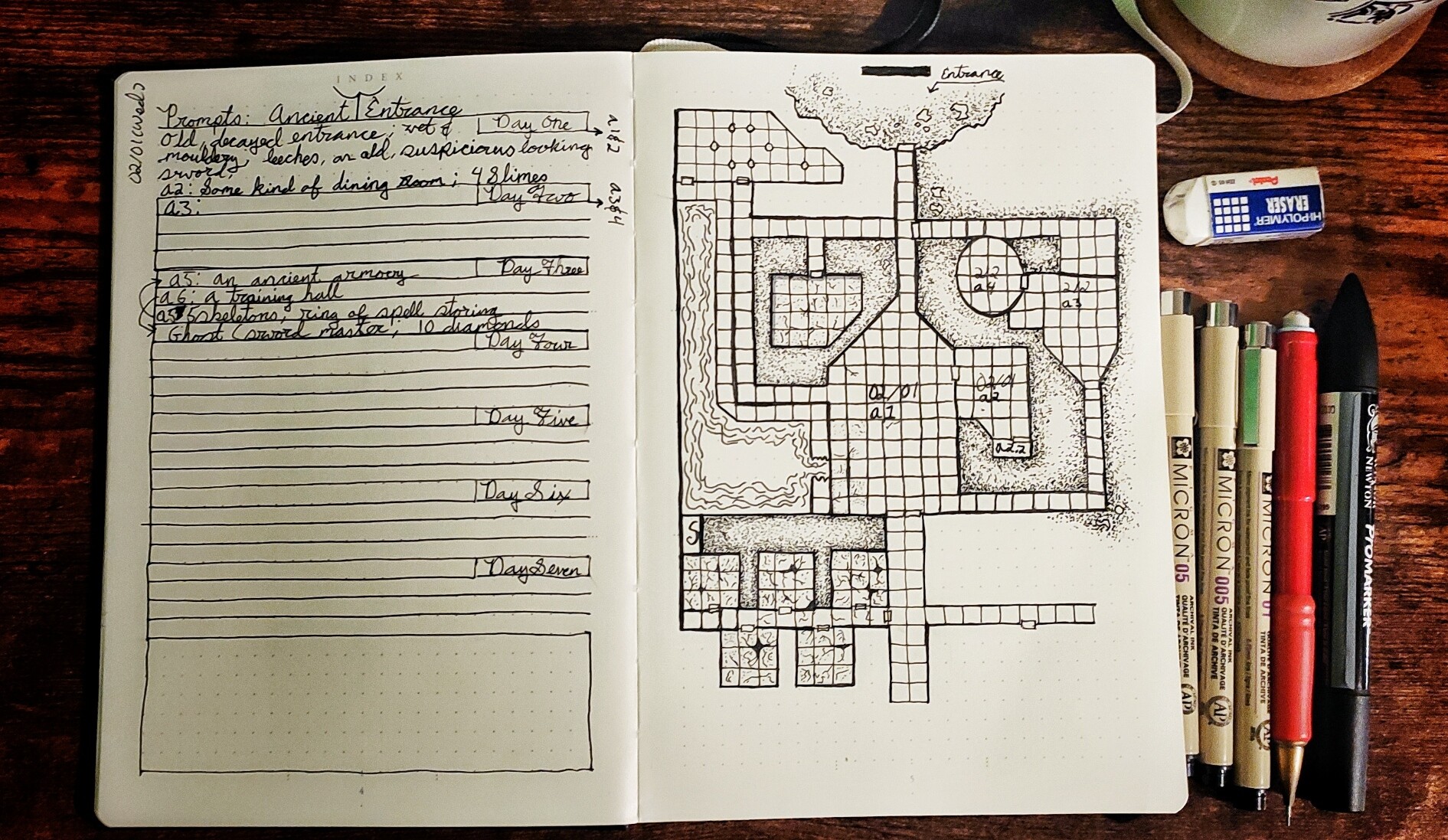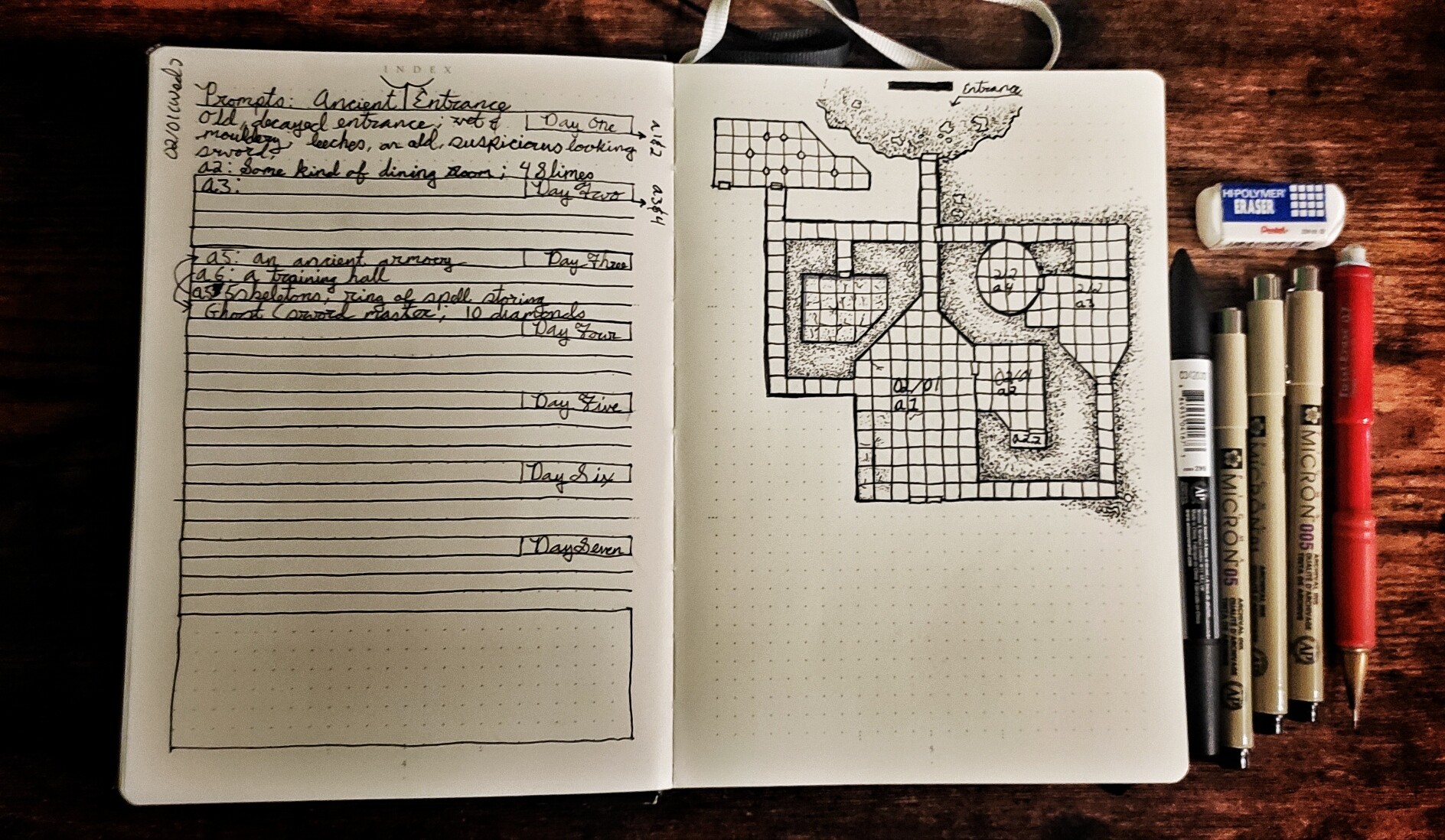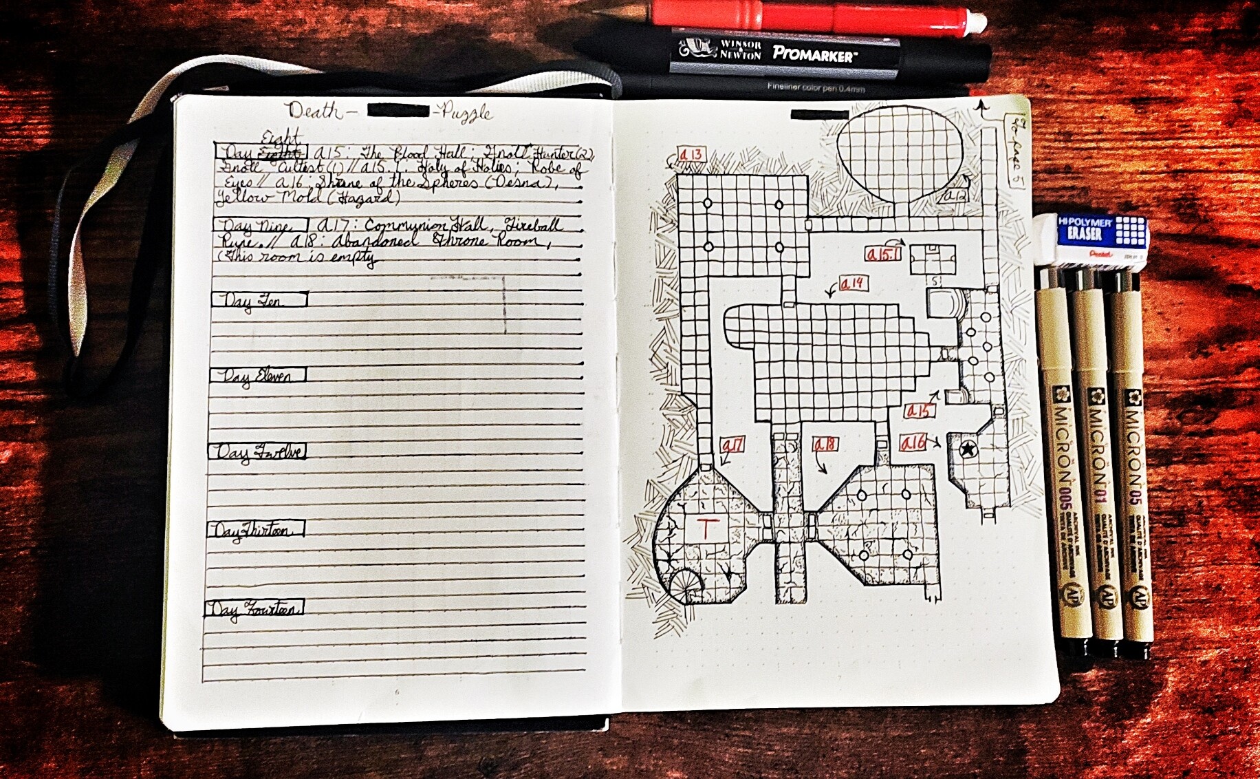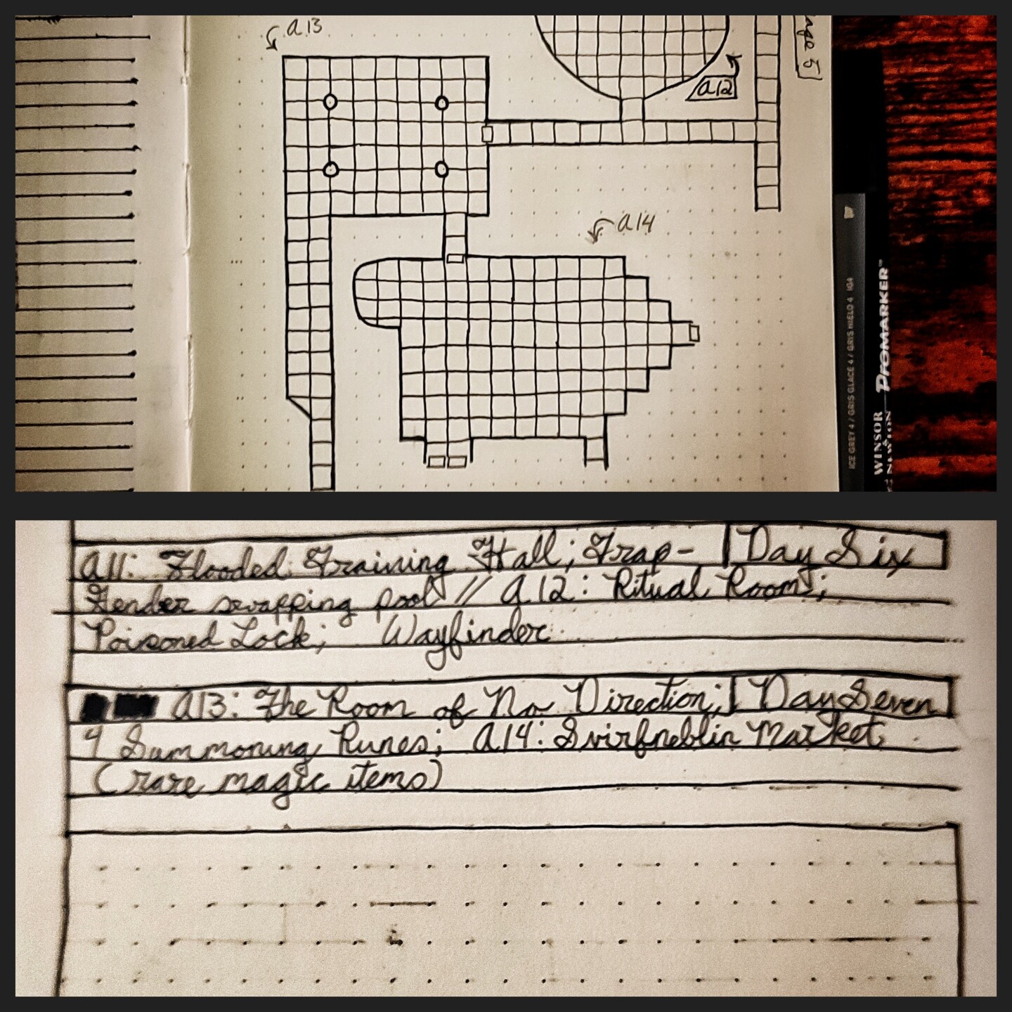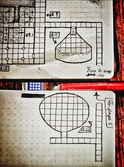 Day 32 (technically 33) of #dungeon23 rooms 30, 31, and 32 as well as a new sphere! In my haste to catch up I failed to mention that my lovely partner left me an encouraging note this weekend and it allowed me to have the energy to crank out these rooms.
