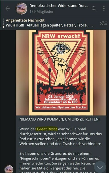 Mobilisierung für Düsseldorf mit der antisemitischen Verschwörungserzählung des "Great Reset".