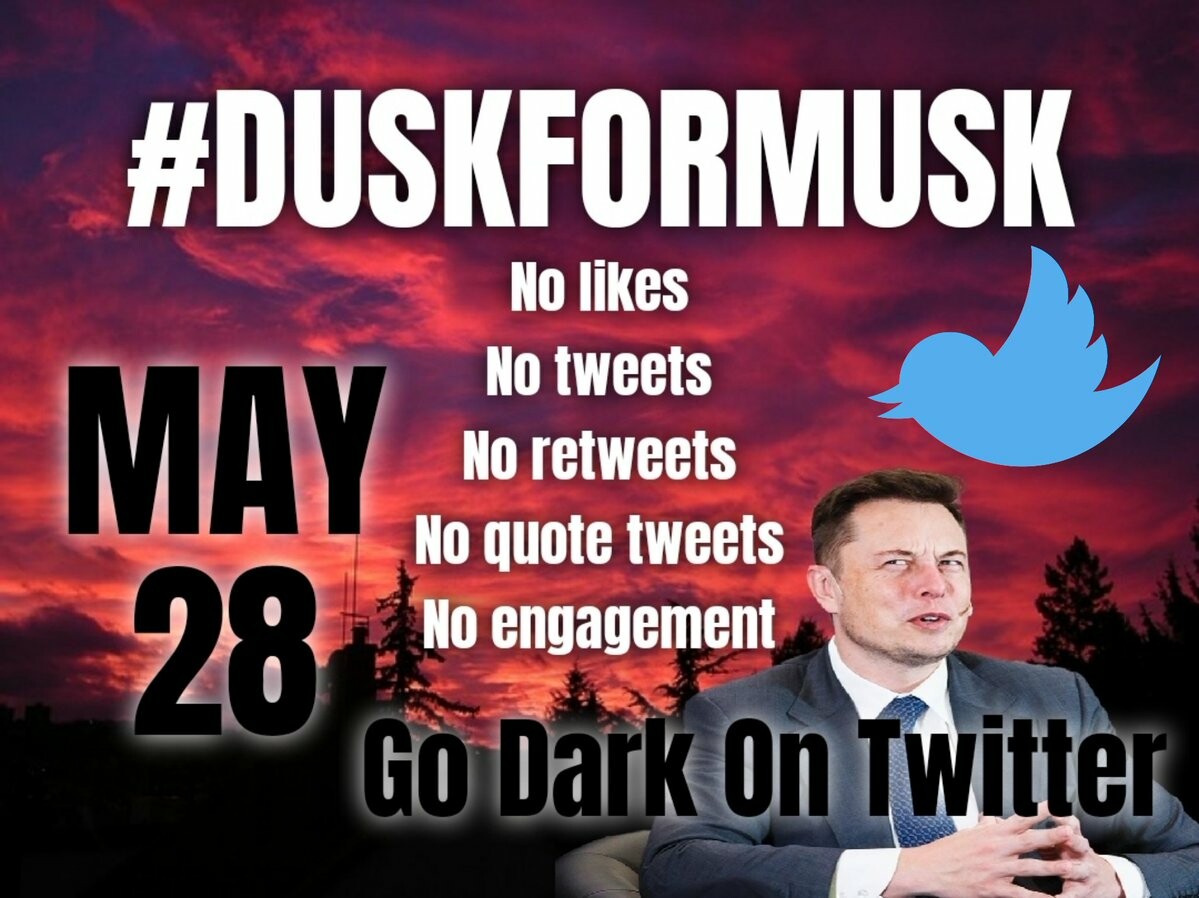#DuskForMusk is a simple anti Elon action. Don't Tweet , RT or comment on anything for the 24 hours that starts at midnight. I did it last time & I will be doing it again.