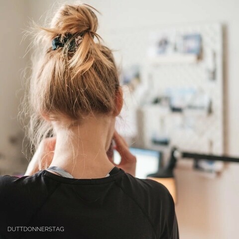 In der kleinen Teams-Runde habe ich zwei Kolleginnen mit Dutt auf dem Bildschirm gesehen 😅