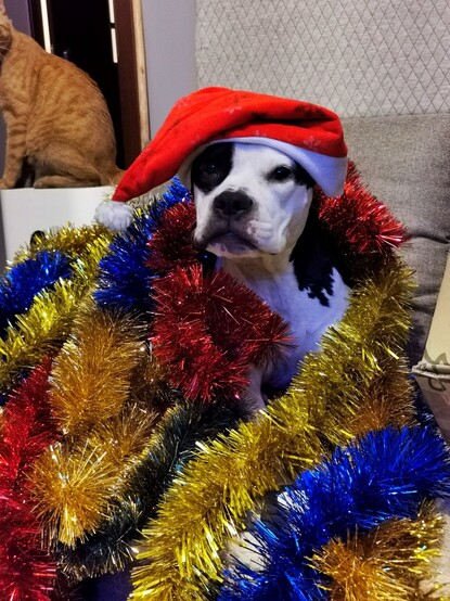 Oto świąteczna Amstaffka, patronka urwisów wszelakich. Udostępnij ją, a jeśli byłeś/-aś naprawdę niegrzeczny/-a, to dostaniesz od Mikołaja wagon chrustu i tonę węgla 🎄