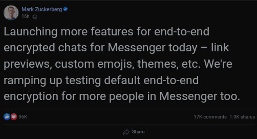 #Meta : " we are upgrading #facebook chat end to end #encryption " ...