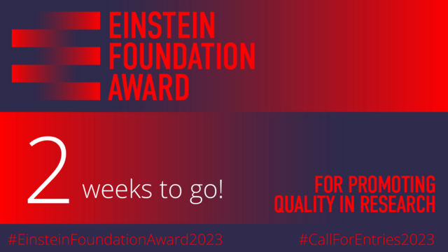 2 weeks to go! The €500k #EinsteinFoundationAward for Promoting Quality in Research is awarded in 3 categories: Individual, Institutional & #EarlyCareer Award. #CallForEntries closes 30/04/2023 – apply or nominate NOW: https://einsteinfoundation.de/en/award/