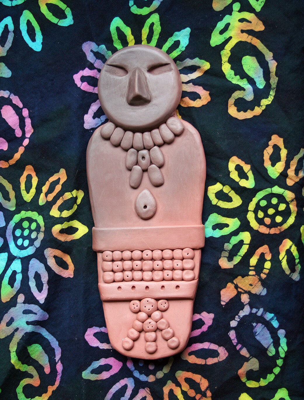 I needed to entertain some children, so I set up an #art table, my #pottery tools, and some red clay. I showed them #prehistoric #Utah #PillingFigurine photos to mimic. I couldn't resist creating a few #figurines too. My young visitors had great fun, so did I.