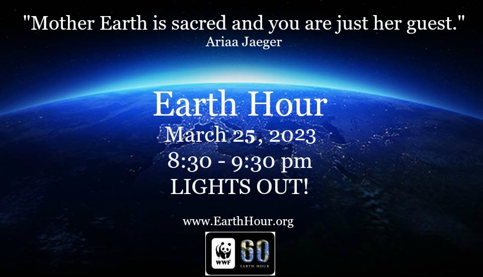 Let #earthhour begin! #earthhour2023 is about turning off your lights for one hour today at 8:30 local time, to bring attention to protecting our Earth.
