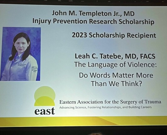 So proud of one of our founders, @LeahTatebe@twitter.com for winning the 2023 Injury Prevention Research Scholarship at @EAST_TRAUMA@twitter.com