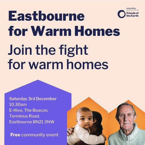 We're partnering with @ebclimate@twitter.com & @EActioneb@twitter.com to launch the #EastbourneForWarmHomes campaign at the E-Hive in The Beacon shopping centre on Dec 3rd, which is the #WarmThisWinter Day of Action on Fuel Poverty. @friends_earth@twitter.com discovered #Eastbourne has 13 energy crisis hotspots!