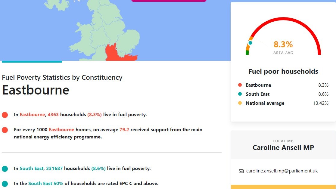 According to @NEA_UKCharity@twitter.com, 4,363 households in #Eastbourne live in #fuelpoverty, 8.3% of all households in the town! This is unacceptable & unnecessary.