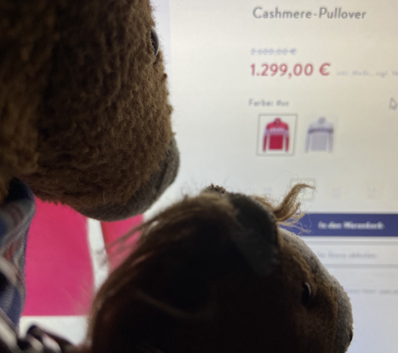 Ach. Ach. Was zum Fohlen? Wir wissen ja, das Pferdefashion unserer großen Artgenossen schon 🐷teuer ist, aber bei Euch Menschen ist das ja … noch krasser. *Schnaub #reduziert -50% #echtjetzt #1pullover #schnäppchen