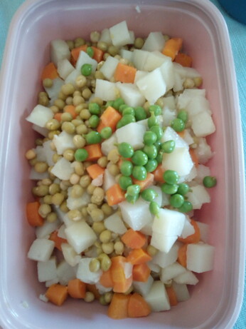 Hicimos una ensalada rusa con arvejas de la huerta y de lata, porque las de la huerta eran poquitas... decime cual es cual #huerta #orgánica #familiar #sustentabilidad #ecología #soberanía_alimentaria