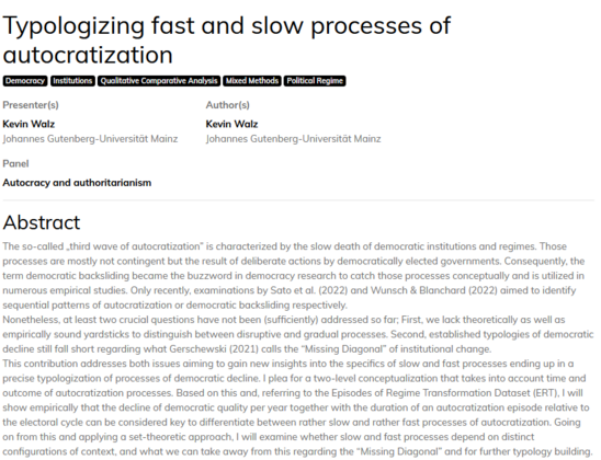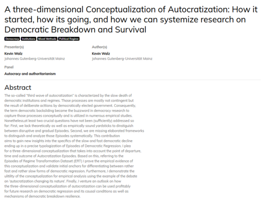A great panel on "Autocracy and Authoritarianism" and Day 4 at #ecprgc23 is in the books. Glad that I could contribute by presenting some of my work on a three-dimensional conceptualization of Autocratization and its analytical application as well.