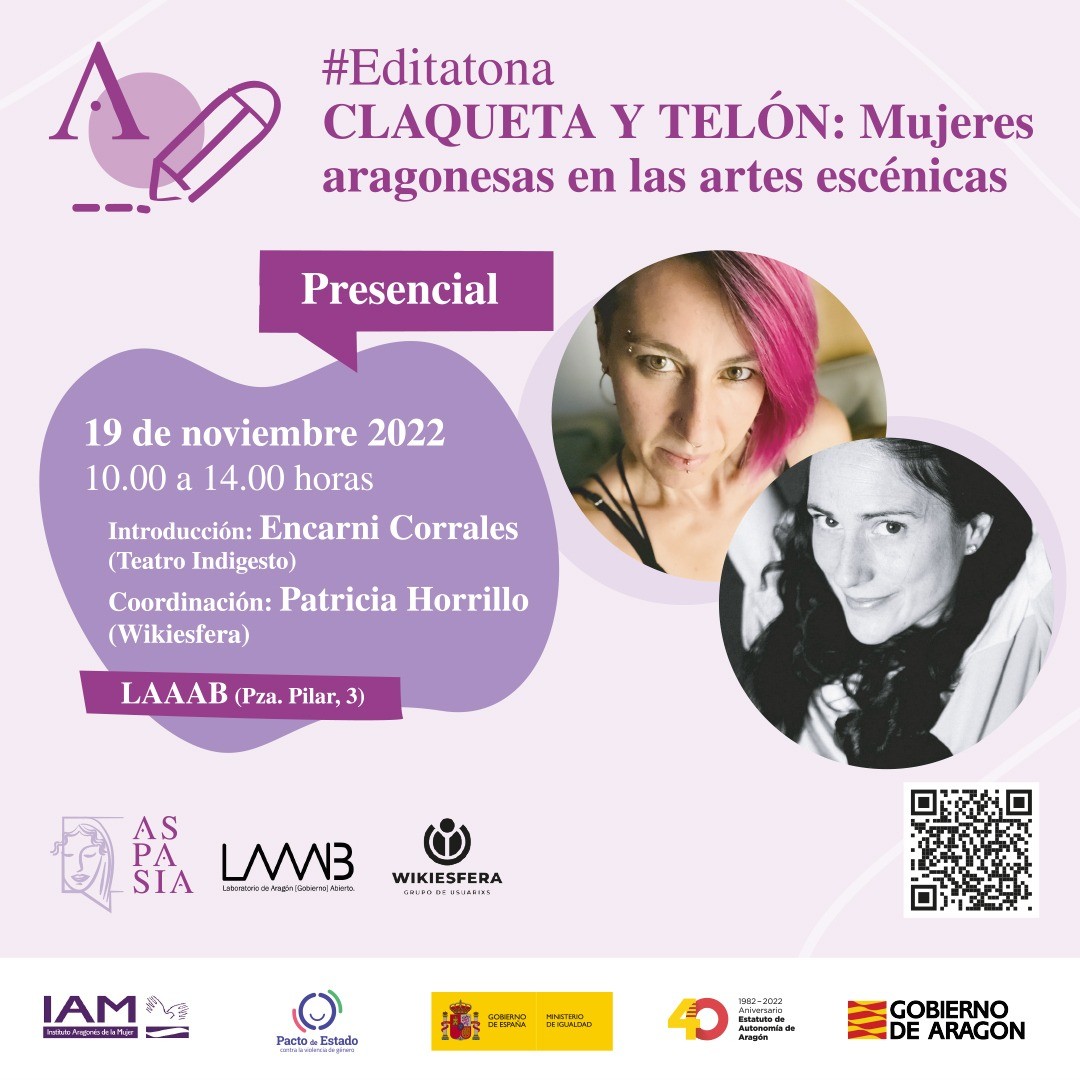 🚨#ATENCIÓN Últimos días para apuntarse a la #editatona de mujeres aragonesas en las artes escénicas. No tienes que tener conocimientos previos. Sólo venir con tu portátil.