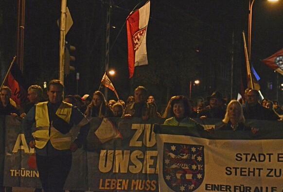 Mehrere rechte Akteure haben gestern nach Erfurt mobilisiert. Mit wenig Erfolg: Statt 10.000 folgten nur 2.000 Menschen den Aufrufen. Die Redebeiträge fokussierten auf Delegitimierung der Demokratie & Relativierung des russischen Angriffkrieges. Unser Videobericht: #ef1211