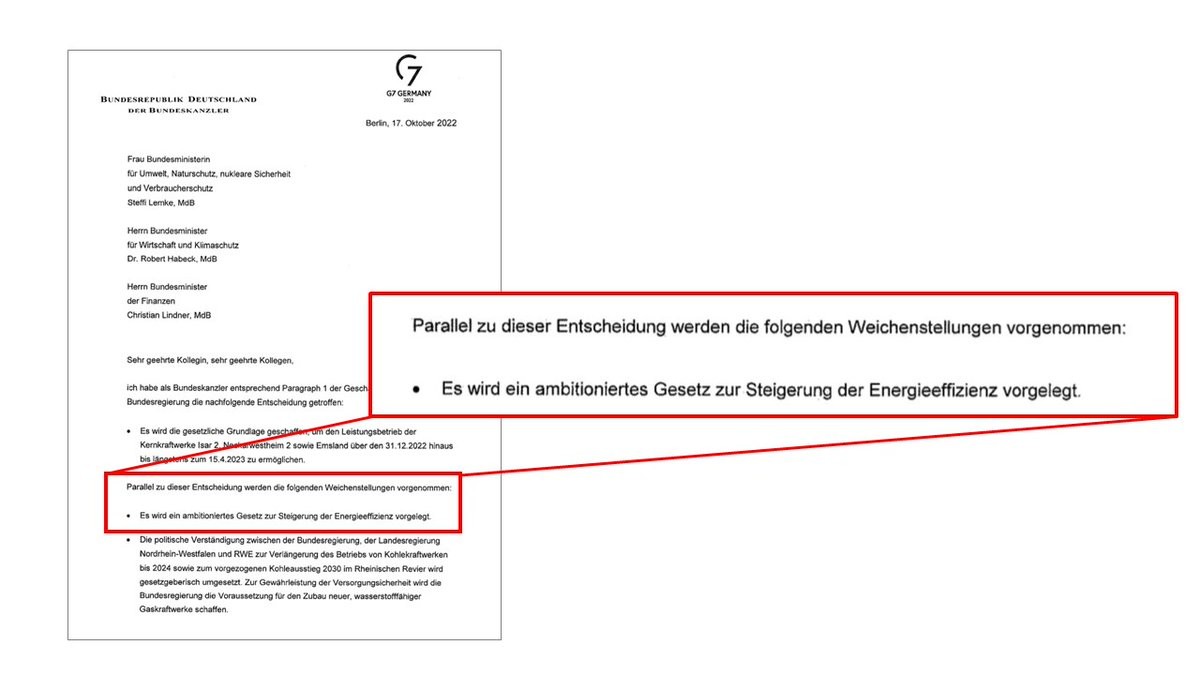 Zur Erinnerung: Vor 4 Monaten hat der @Bundeskanzler in seinem "Machtwort" zum Atomstreit das #Effizienzgesetz angekündigt.