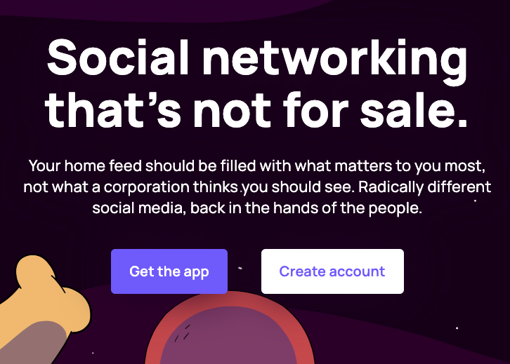 Høvuðsboðskapurin á høvuðssíðuni hjá Mastodon er, at tað ikki er til sølu.