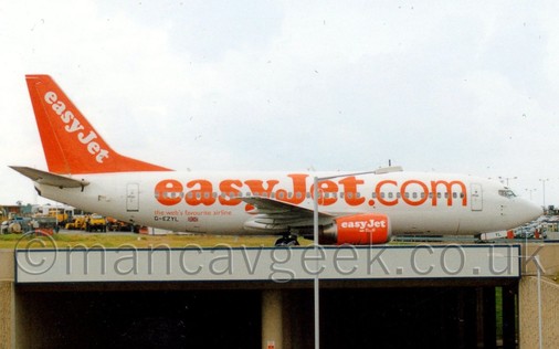 G-EZYL, Boeing 737-33V, easyJet, taxiing out to the runway at Luton Airport, some time after March 1999.