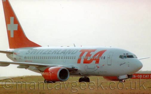 HB-IIH, Boeing 737-7Q8, TEA Switzerland, at Luton Airport, some time between March 1998 and April 1999.