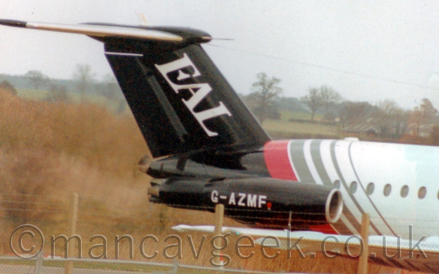 Tails 31st December 2022: G-AZMF, British Aircraft Corporation BAC1-11-530FX, European Airways, at Luton Airport, some time in the late 1990s.