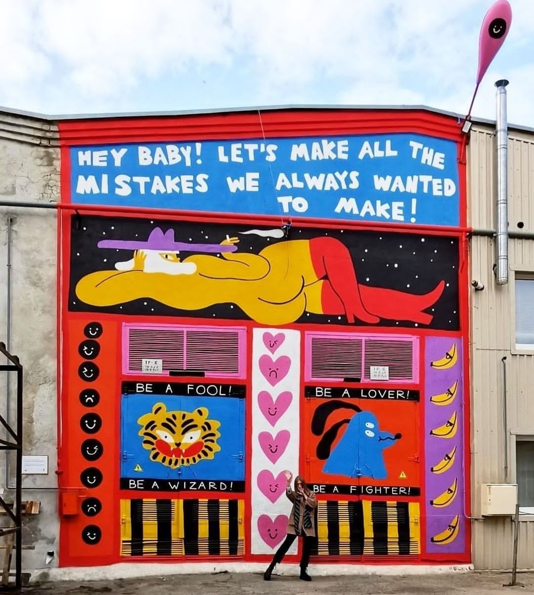β€οΈArtist: #EgleZvirblyte - in City: #Vilnius Lithuania π±πΉ - Title: "Hey baby! Let's make all the Mistakes we always wanted to make! /Hey Baby! Lass uns all die Fehler machen, die wir schon immer machen wollten) - #art #streetart #mastoart #mural