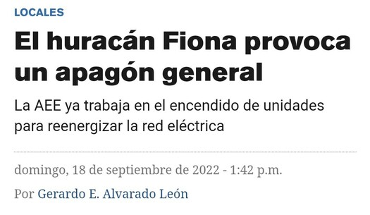 Hurricane Fiona just wrecked Puerto Rico's electrical grid #ElApagón. So much for #LUMA's promised resiliency measures. Feeling helpless & afraid for family who live in the colony but also guilt for my #Diasporican privilege. Prayers welcome. Will share vetted resources soon. 🇵🇷