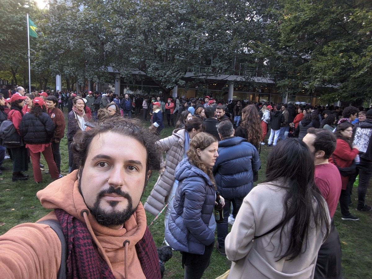 Após duas horas de fila, consigo vez a embaixada do Brasil, em Berlim. Uma coisa pro próximo governo, que não será o atual, melhorar. Há MUITA gente ainda por aqui. #Elecciones2022