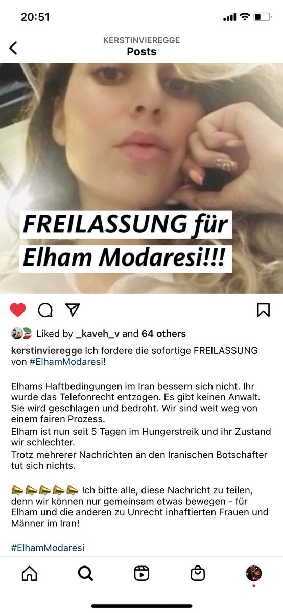 Die Schwester von #ElhamModaresi fordert Menschenrechtsorganisationen und uns auf, Elham zu helfen. "Sie ist nicht nur meine Schwester, sie ist die Schwester von euch allen!" #IranRevolution