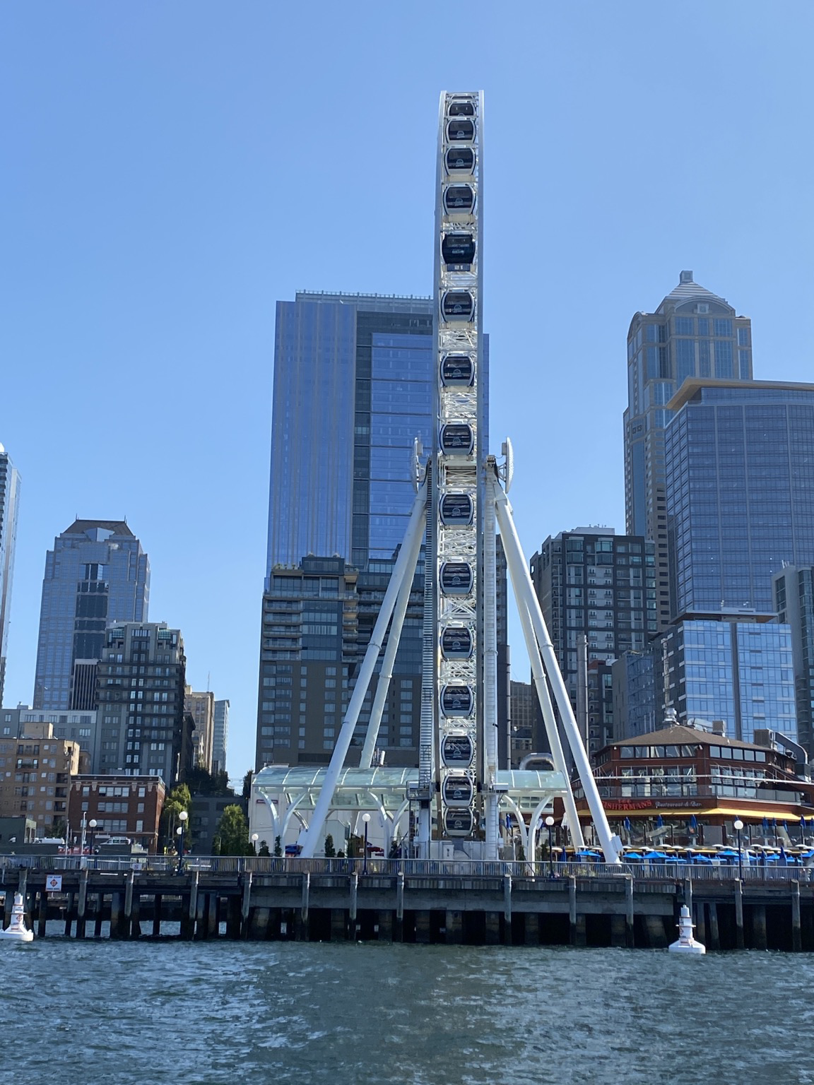 A front view of the Seattle Great Wheel from Elliot Bay #Seattle #FerrisWheel #SeattleGreatWheel #PNW #PugetSound #ElliotBay #boating #Cityscape