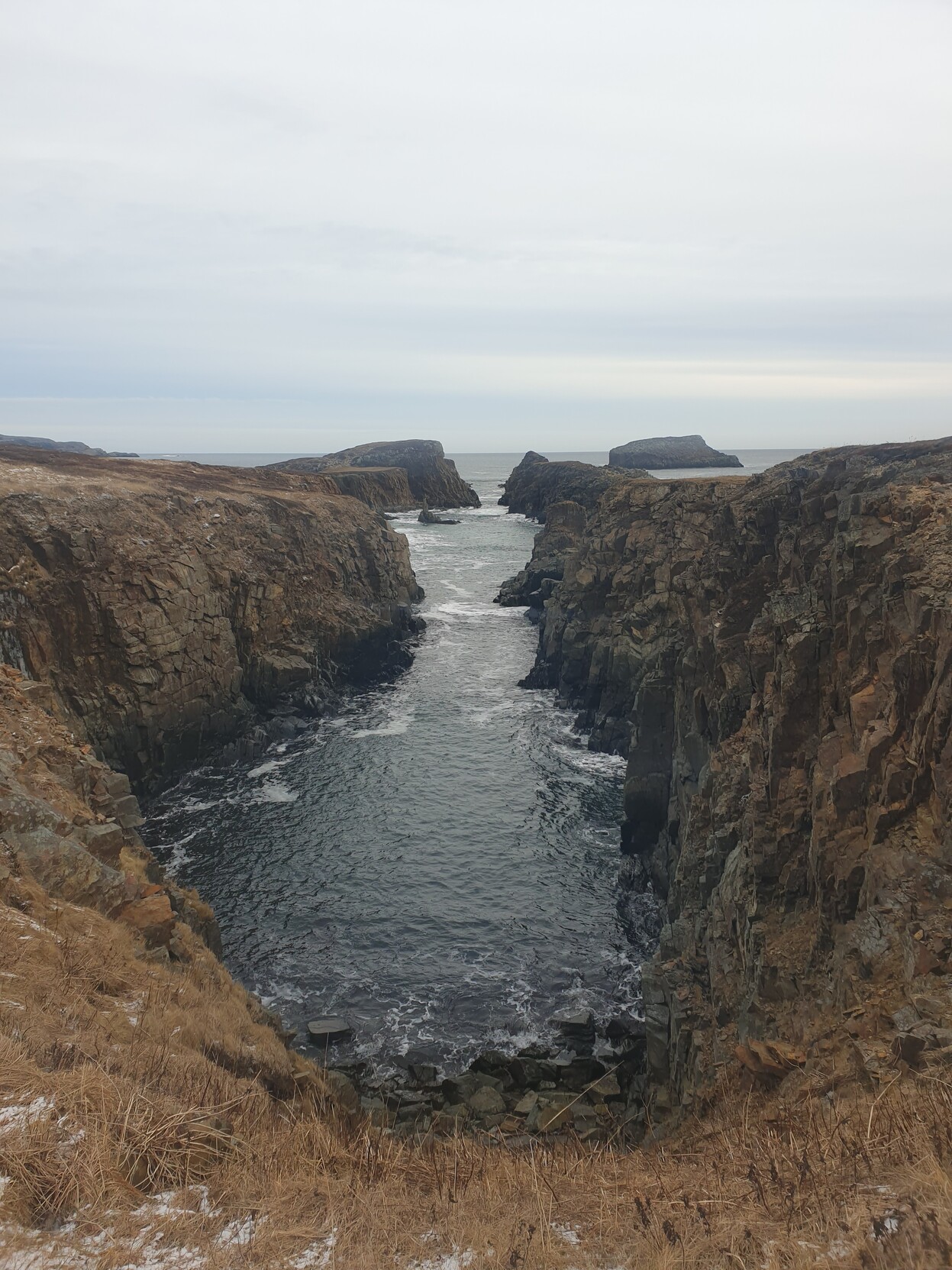 Grey skies, light scattered snow this morning in Elliston, Nfld. Highways clear, empty, from Bonavista to town.