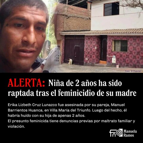 Exigimos a las autoridades la pronta captura y detención de Manuel Barrientos Huanca, presunto feminicida.