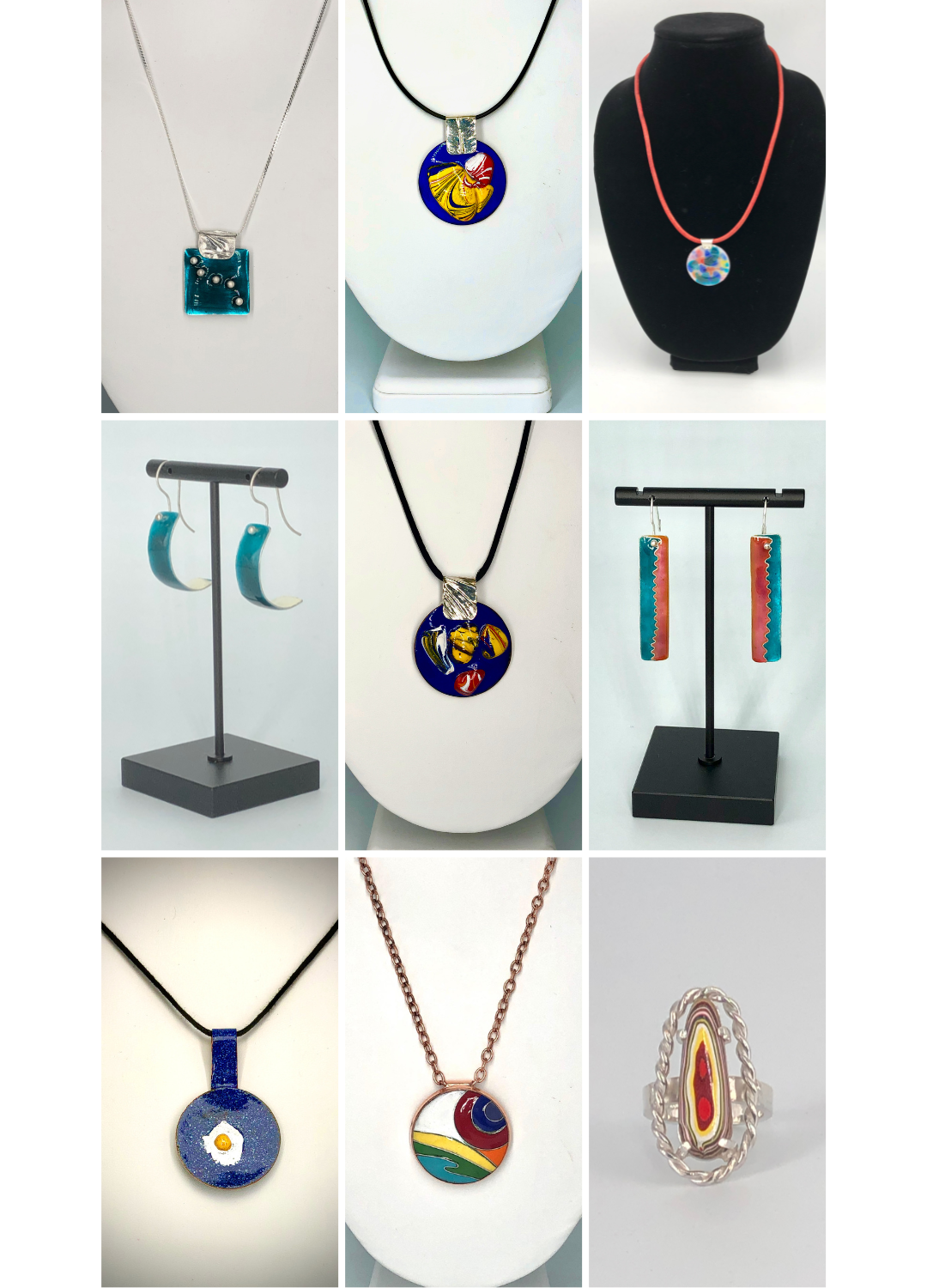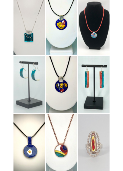 Hello. My name is Tammy and this is my first toot on Mastodon! I'm a librarian for my day job and I also sell my own handmade jewelry on the side. I specialize in making enamel jewelry, but I also make jewelry with gemstones too. I've been doing this for about 4-5 years now and am learning all the time! Here is a photo of some of my recent works: #introduction #enamel #enameljewelry #enameljewellery #handmade #metalsmith #handfabrication #hotenamel #jewelry #jewellery