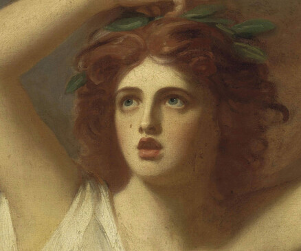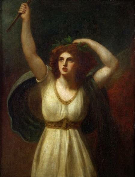 Image is George Romney's portrait of Lady Hamilton as Cassandra.