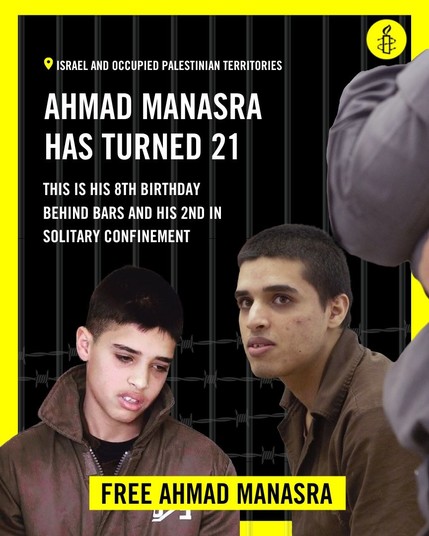 Ahmad Manasra has spent his 21st birthday behind bars π