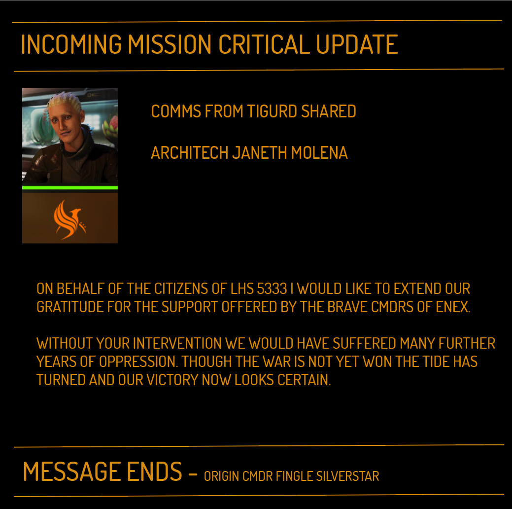 Mission update by CMDR Fingle Silverstar