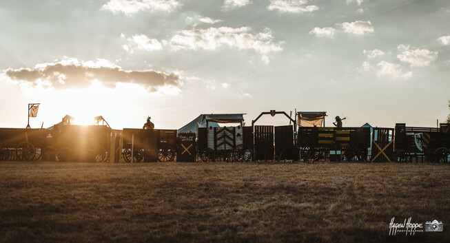 Sunrise behind the camp of the king at the Larp event "Epic Empires" 2022