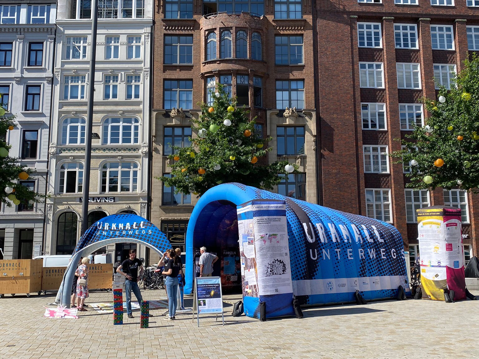 Als Teil des öffentlichen Programms der #epshep23: #urknallunterwegs steht jetzt auf dem Gänsemarkt, morgen auf dem Uni-Campus! Machen Sie mit: Spiele, Buttons, viel zu erleben! #netzwerkteilchenwelt