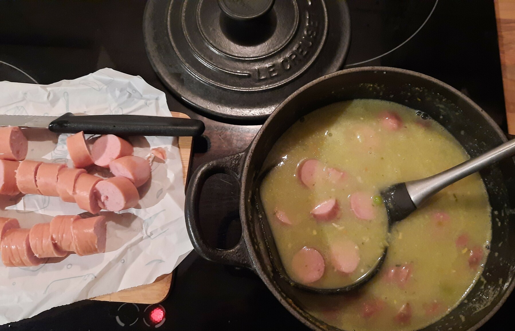 En de erwtensoep is weer prima gelukt! En het ruikt nu zo lekker in huis.