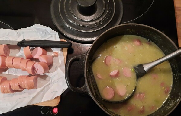 #Erbsensuppe als #Ehemannfutter für morgen. Hoffentlich bekomme ich morgen in der HSV-Mitgliederversammlung genau so viel Wursteinlage wie diese 🙃 #DtKüche